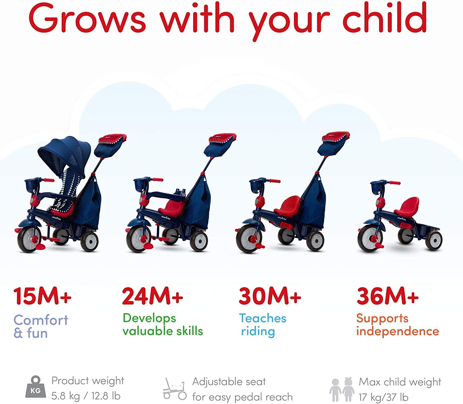 • 4 etapas "crece conmigo" - tu hijo disfrutará de este producto durante años a medida que el triciclo evolucione a través de sus etapas de desarrollo