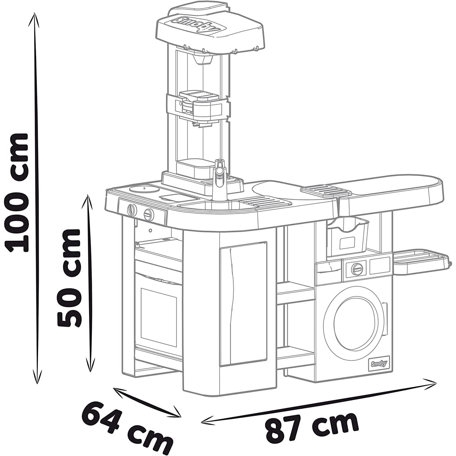 Smoby- Cocina de Juguete Cleaning, 2-en-1, con Funciones de Cocina y Limpieza, con Lavadora, Tendedero, Plancha, Adecuado a Partir de 3 Años (7600311050)