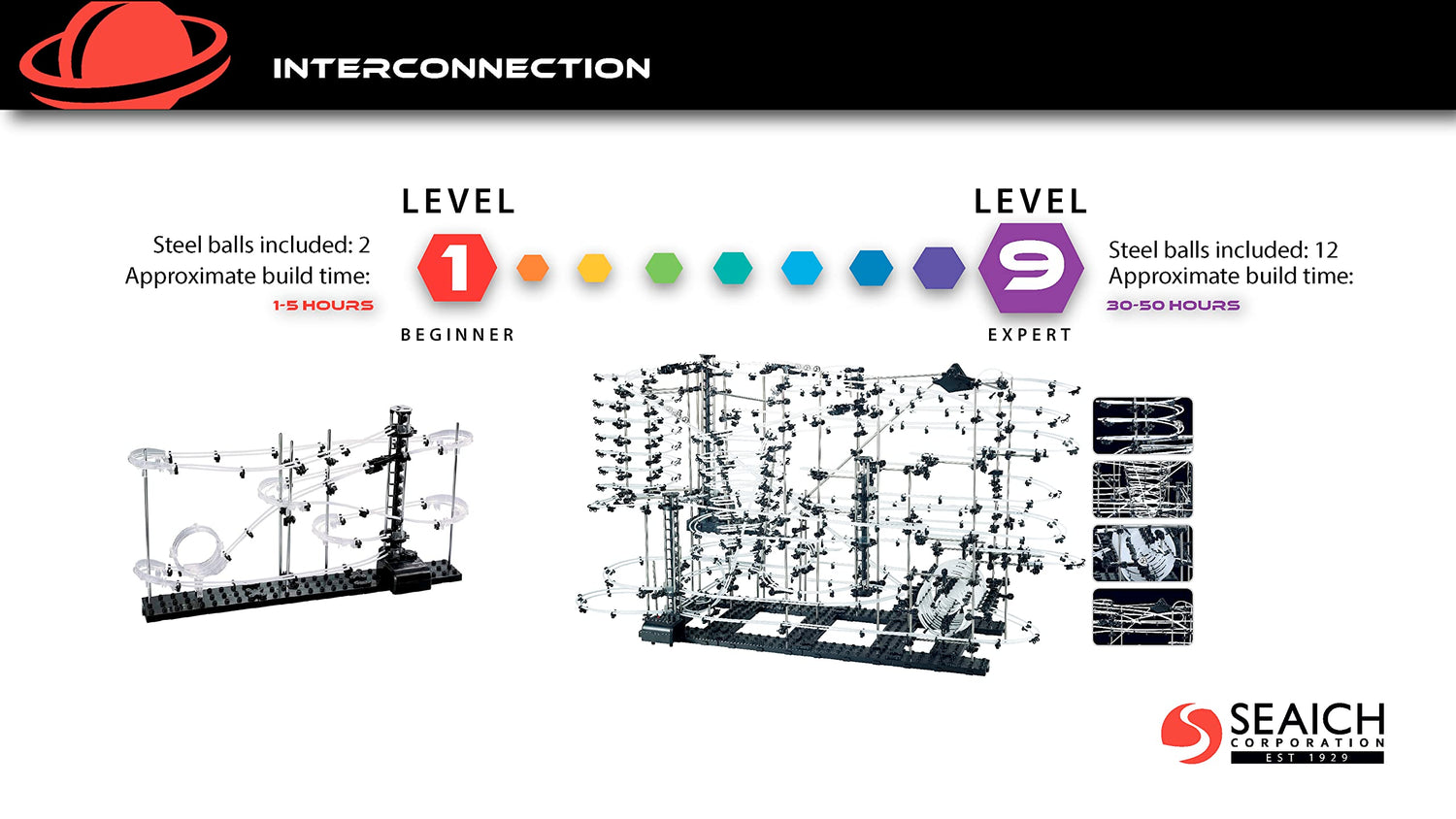 - Instrucciones de construcción paso a paso: cada pista de bolas tiene unas instrucciones de construcción detalladas e ilustradas que guía paso a paso a través de cada etapa de construcción.