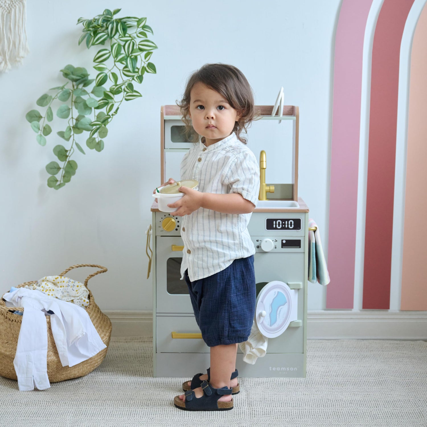 Teamson Kids Cocina Infantil de Madera con huerto, Lavadora Verde, Horno, Fregadero y Accesorios para Juego simbólico en casa is backordered and will ship as soon as it is back in stock.