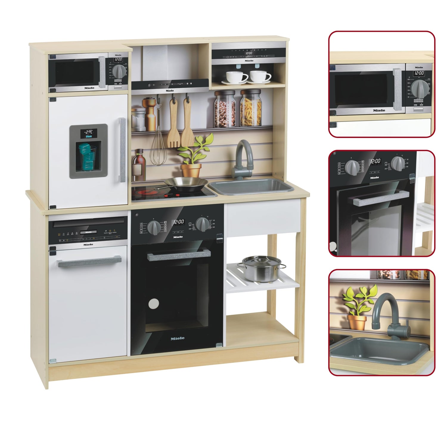 - La amplia y moderna cocina infantil de diseño de Miele está hecha de madera de calidad y contiene todo lo que los pequeños sibaritas necesitan para cocinar