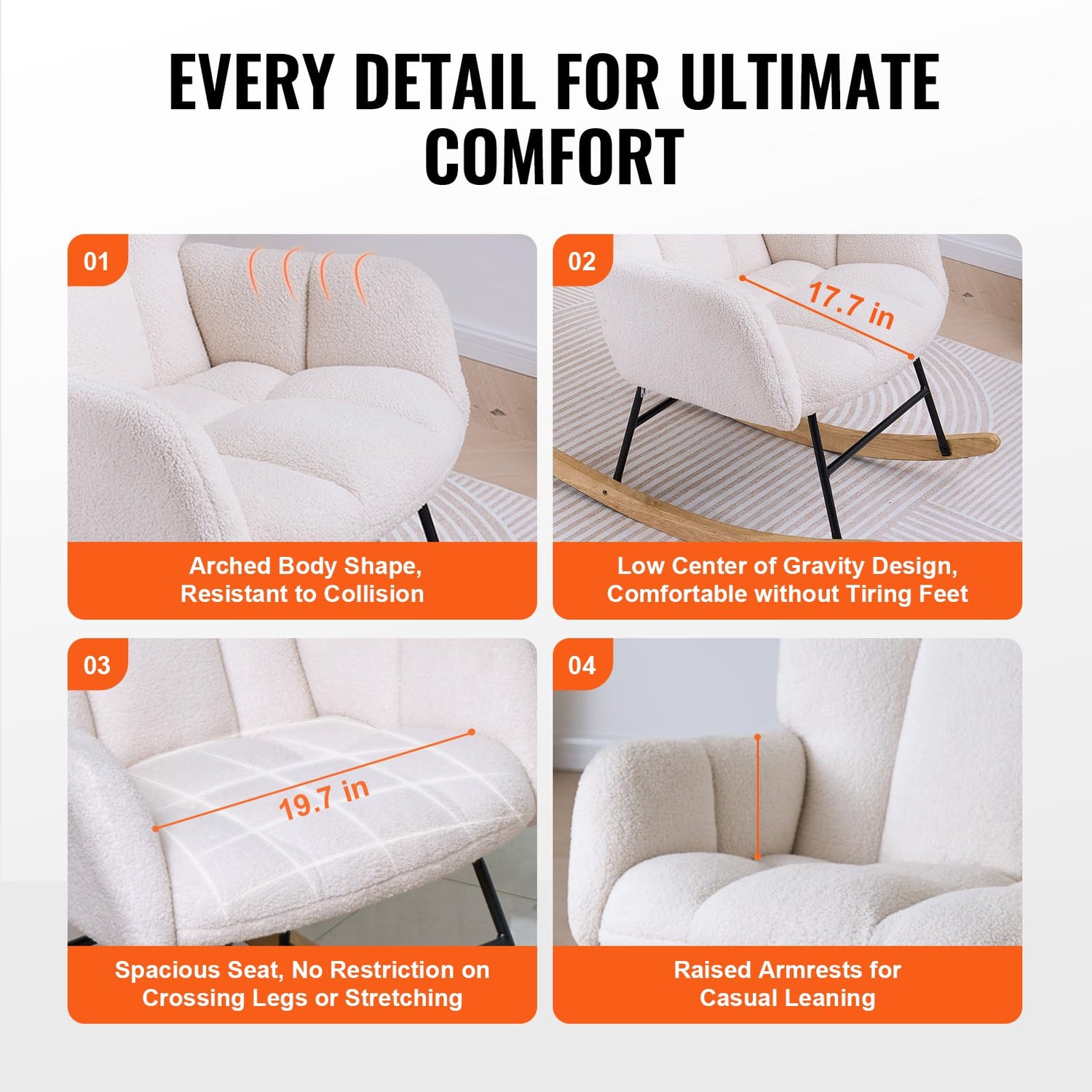 VEVOR Columpio, 113 kg Capacidad de Peso Tela de Peluche Acolchado balancín Deslizante Asiento Suave y Respaldo Alto, Silla de Lactancia para guardería, Dormitorio, Sala de Estar, Blanco Marfil, 95 x