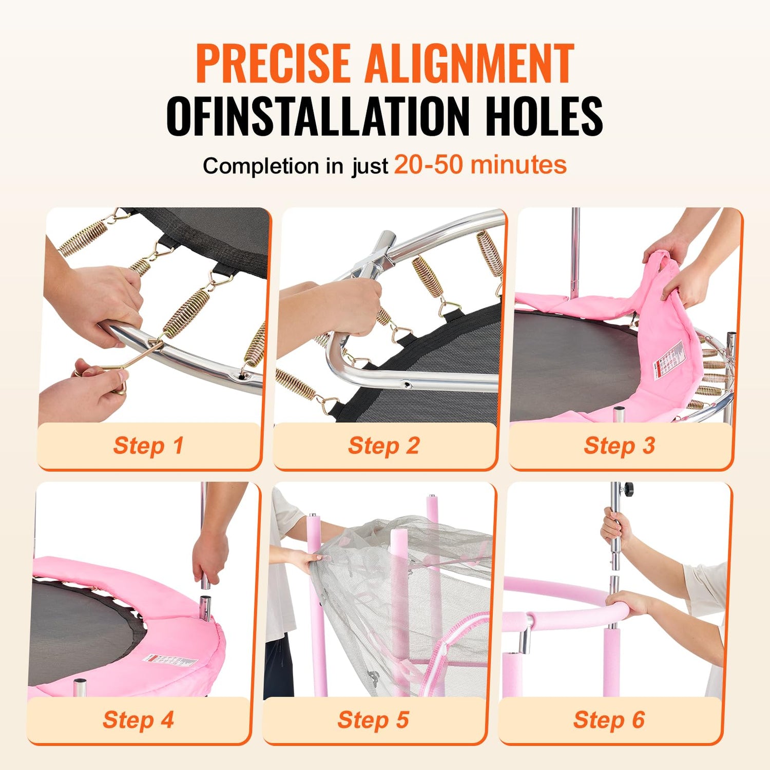 VEVOR Trampolín para Niños para Interiores y Exteriores, Mini Trampolín Recreativo para Niños Pequeños con Red de Seguridad y Aro de Baloncesto, para Niños de más de 3 Años, 1470 x (1540-1690)mm, Rosa