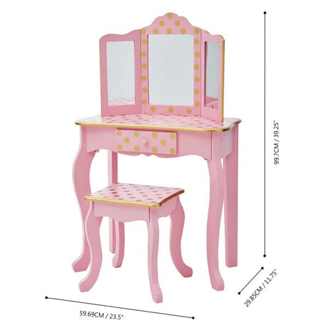 Teamson Kids Mesa de Tocador Rosa de Madera con Espejo y Taburete TD-11670L