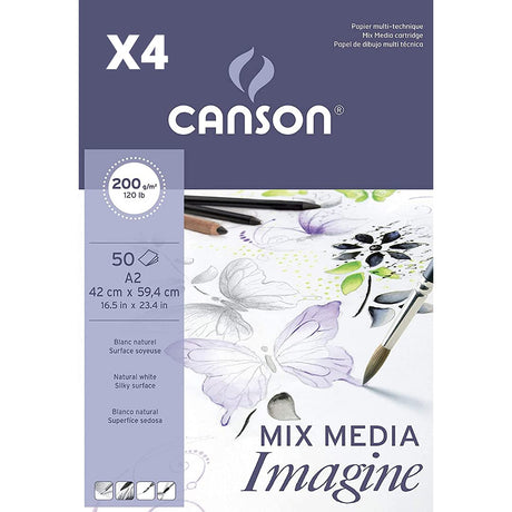 Pack de 4 Blocs Encolados, A2, 50 Hojas, Canson Mix Media Imagine, Grano Fino 200g