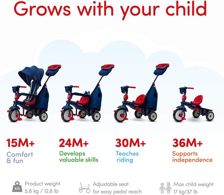smarTrike Swirl Triciclo de bebé 4 en 1, Rojo Marino