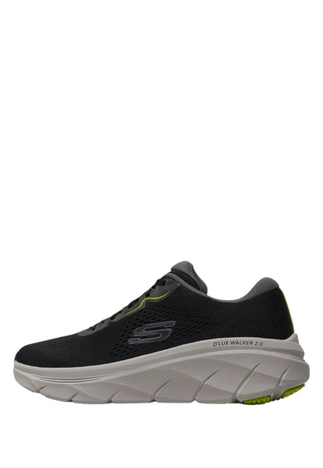 Skechers D'Lux Walker 2.0 Swave, Zapatillas Hombre, Black Engineered Mesh/Synthetic/Lime Trim, 46 EU