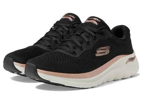 Skechers Arch Fit 2.0 Glow The Distance, Zapatillas Mujer, Black Mesh/Rose Gold Trim, 38.5 EU