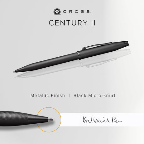 Cross AT0082WG-132 Bolígrafo Century II Micro Ranurado con Detalles en PVP, Negro Mate