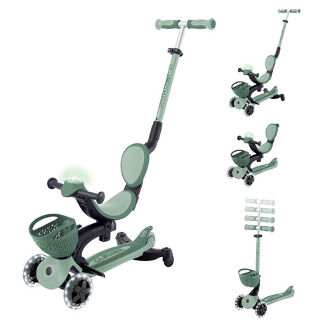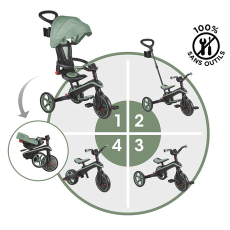 Tricycle Globber Explorer 4 en 1 Evolutif et Pliable Vert Olive
