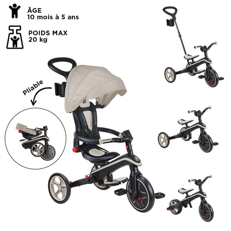 Trottinette enfant Globber Tricycle Explorer 4 en 1 Evolutif et Pliable Taupe