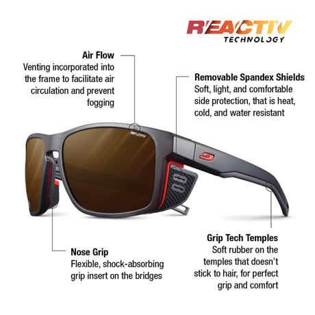 Julbo Shield Gafas DE Sol, Negro/Negro, L Unisex Adulto