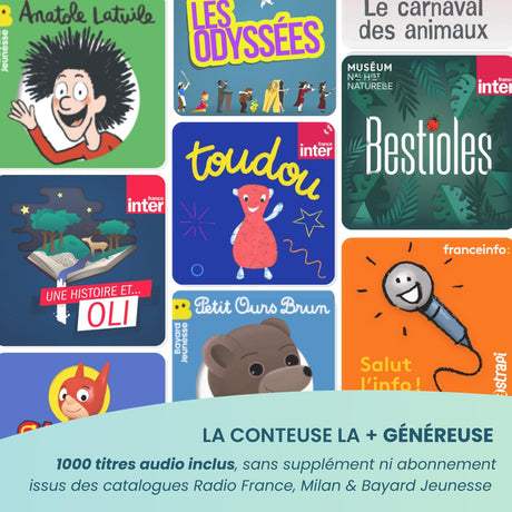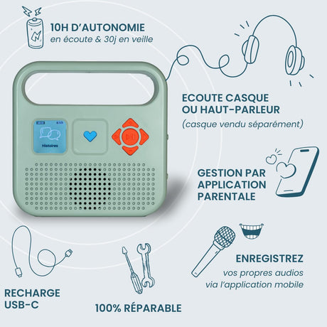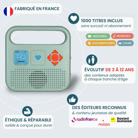 MERLIN - Caja de Historias con 1000 títulos incluidos - Contenido Bayard Milan & Radio France - 3-12 años - Verde Almendra - Versión 2