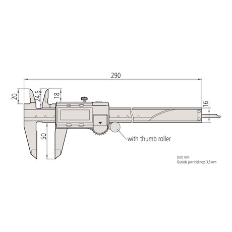 Mitutoyo - 709-20 Calibre digital sin salida de datos o polea de transmisión IP67 0-150 mm