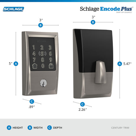 SCHLAGE BE499WB CEN 622 Encode Plus - Cerradura inteligente con WiFi, color negro mate
