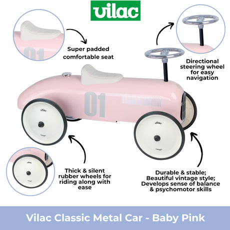 Vilac- Porteur Voiture Vintage Rose Tendre Aviones, Color Rosa (1127)