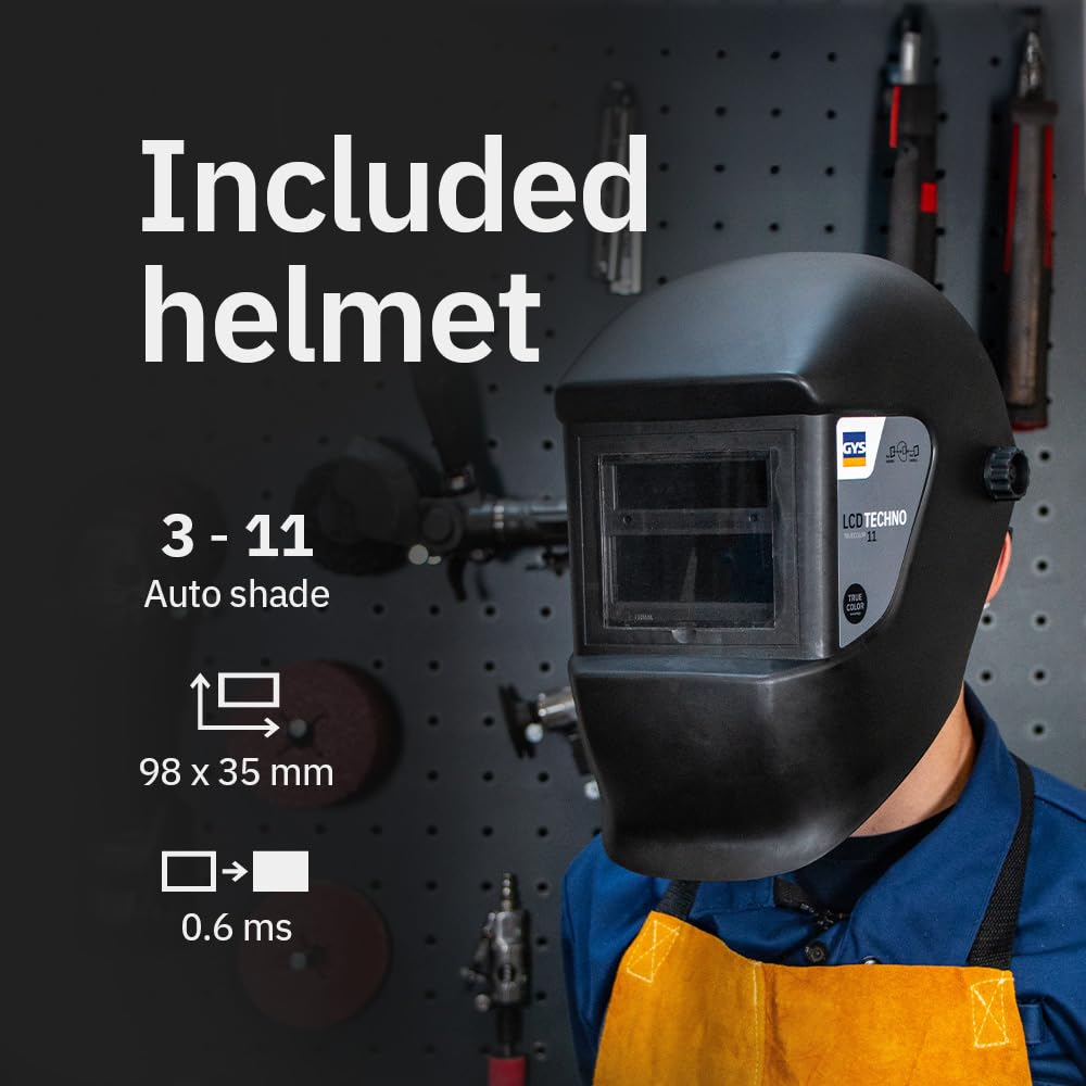 GYS, GYSMI 160A, estación de soldadura con electrodo recubierto de 160 A monofásico de 230 V (MMA), con máscara LCD TECHNO 11, portaelectrodos, cable de masa, 10 electrodos Ø2,5 mm, martillo/cepillo