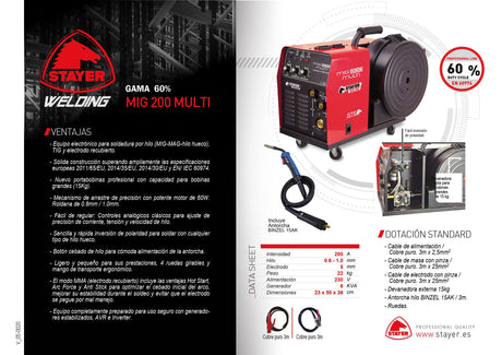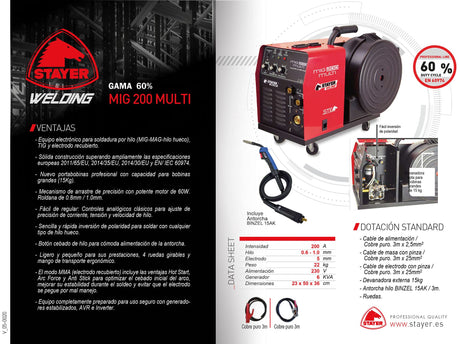 Equipo de soldadura inverter Industrial MIG/MAG MIG 200 MULTI