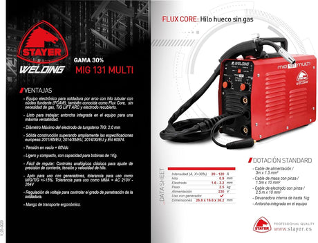 Stayer Equipo de soldadura para Hilo hueco, MIG 131 + Bobina de hilo hueco de 0,45Kg.