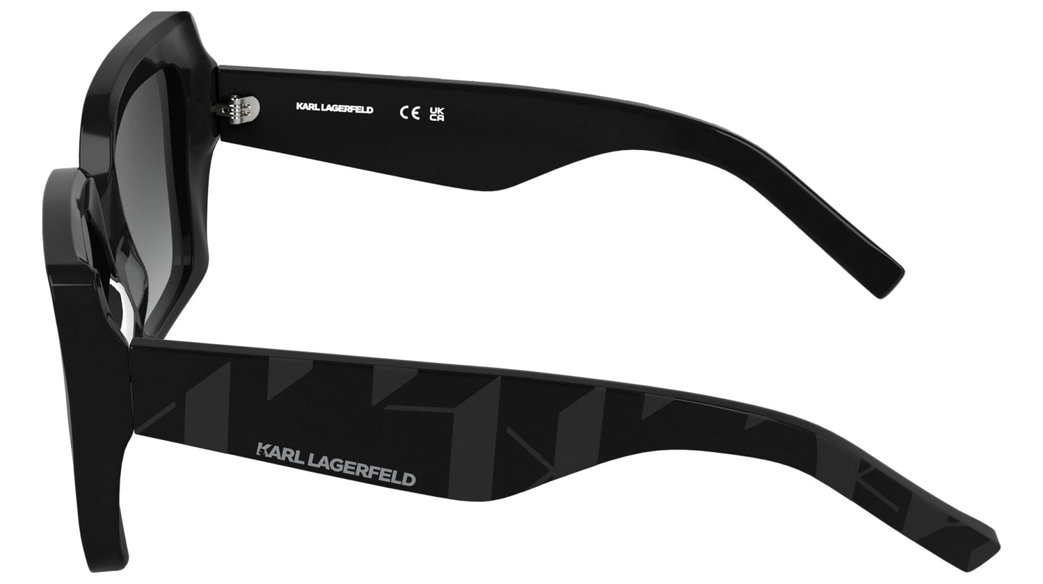 - El elegante logotipo del monograma de Karl Lagerfeld, grabado con láser, realza el diseño de las patillas anchas.