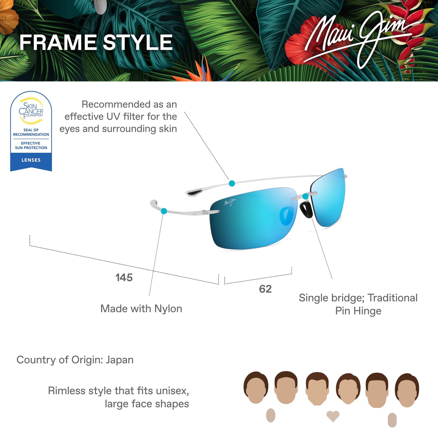 - MAUI JIM, SUNGLASSES MJ0443S Hema, Crystal Matte, 62-14-145, Rectangle