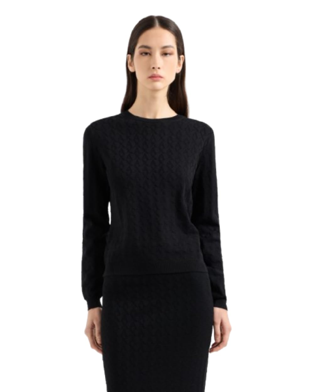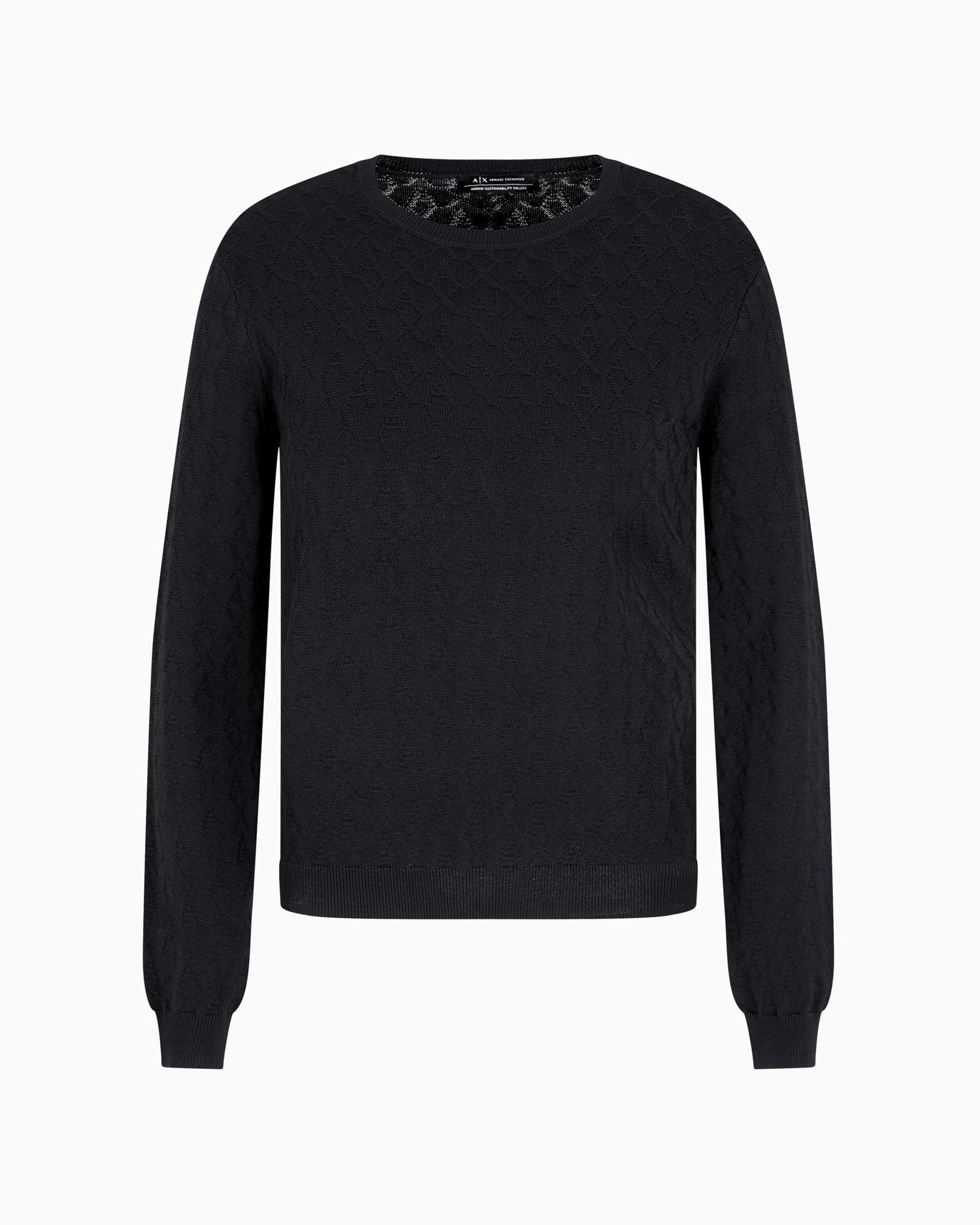 Armani Exchange Allover Monogram Logo Longsleeve Knit Top Suéter, Negro, M para Mujer