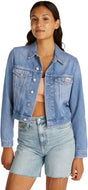 Calvin Klein Cazadora vaquera Mujer Cropped 90'S Denim Trucker con bolsillos en el pecho, Azul (Denim Light), XL