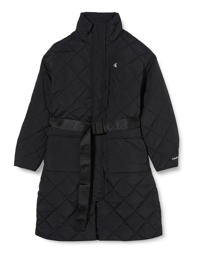 Calvin Klein Jeans Belted Quilted Coat J20J222581 Abrigos de Tejido, Negro (CK Black), L para Mujer
