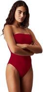 Calvin Klein Traje de baño Mujer One Piece Bandeau, Rojo (Quaint Berry), M is backordered and will ship as soon as it is back in stock.