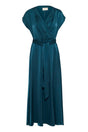 Cream Women's Maxi Dress Formal V-Neck Short Sleeves Tying Belt Ankle Length Vestido, Petrol Blue, 46 para Mujer