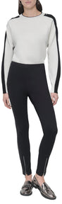 DKNY Pull On Ponte Pant W/Zipper Detail Pantalones, Negro, L Mujeres