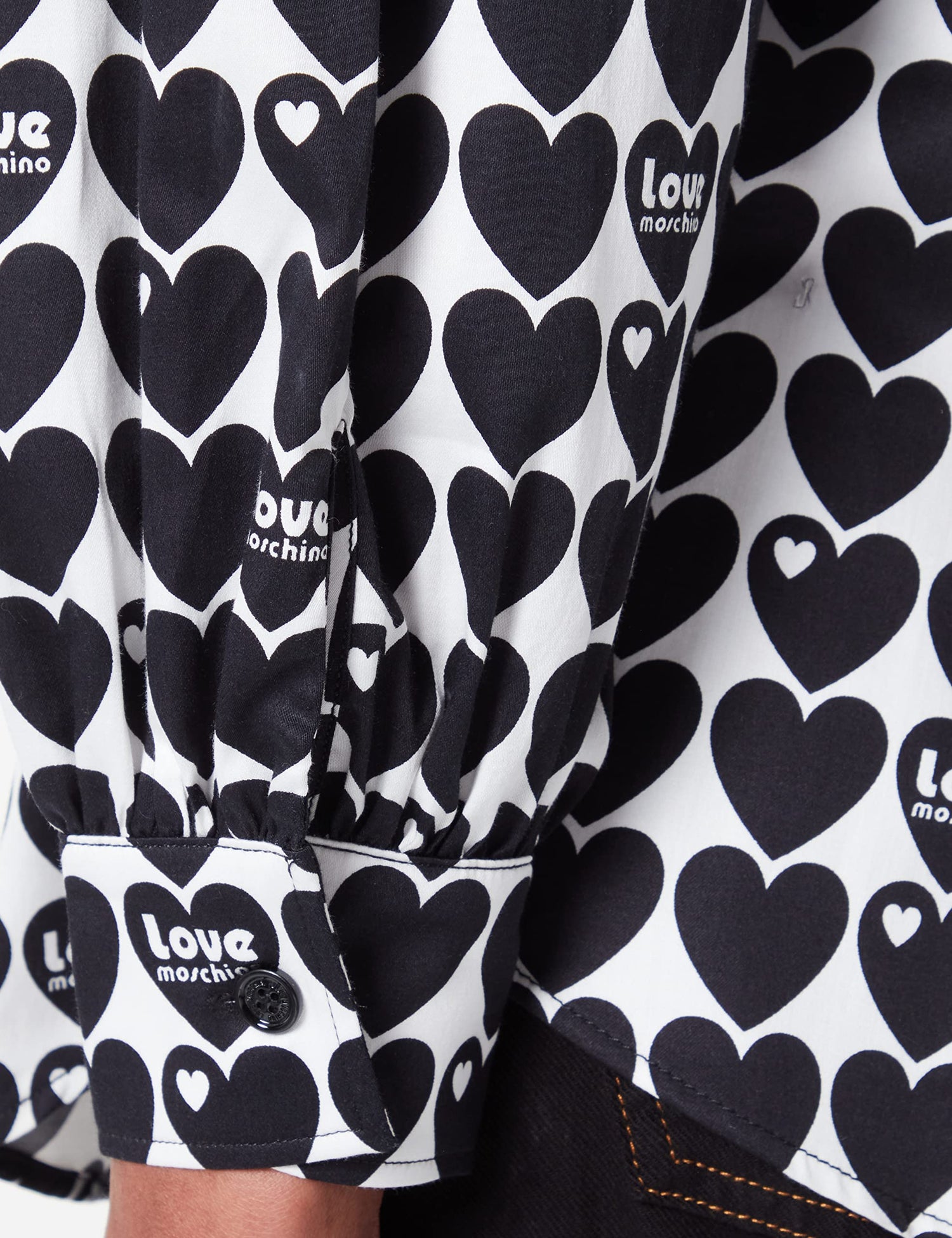 Love Moschino Camiseta con Mangas largas Acolchadas, Blanco y Negro, 42 para Mujer