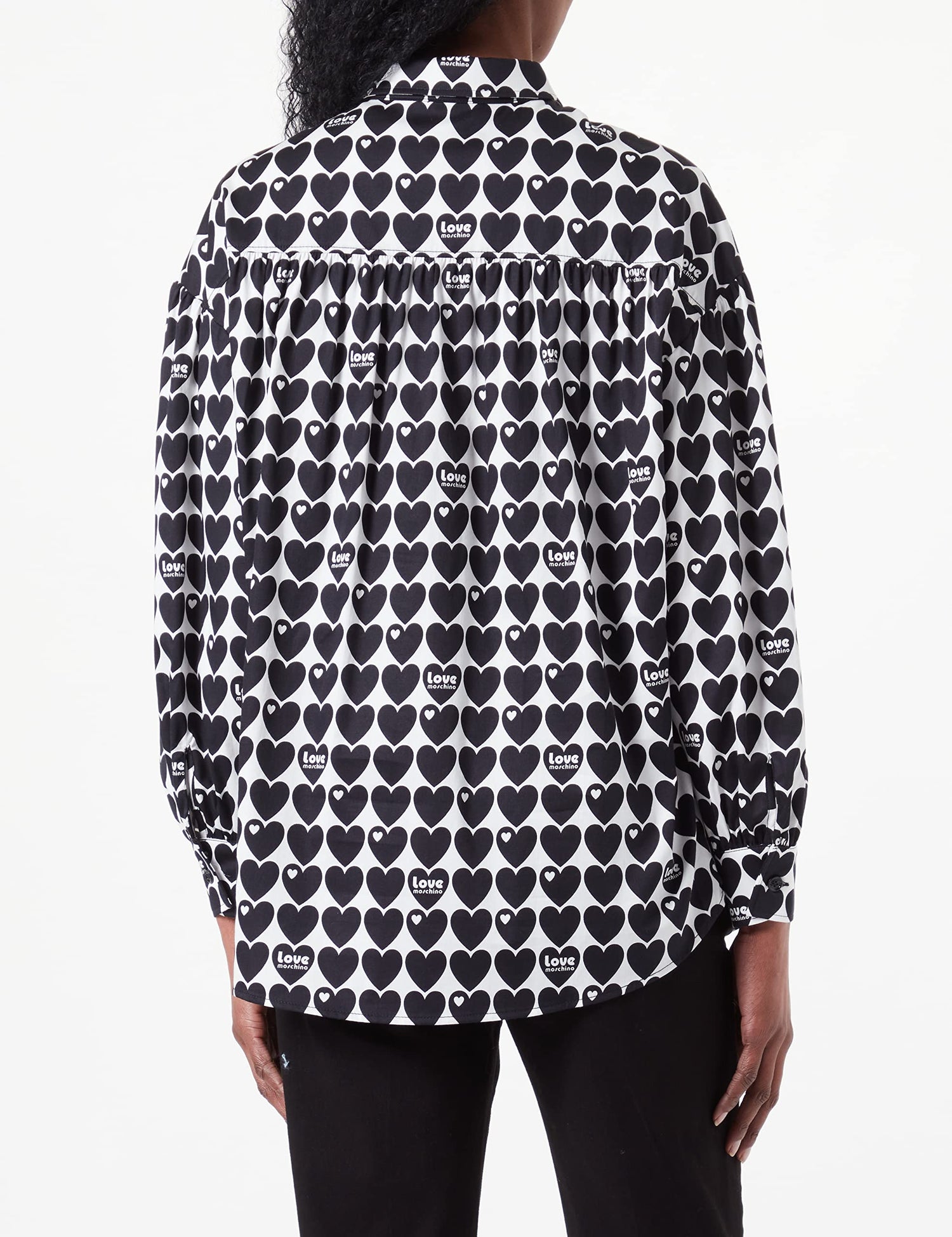 Camiseta con mangas largas acolchadas en algodón elástico satinado fluido todo el amor de la mezquita y corazones estampados.