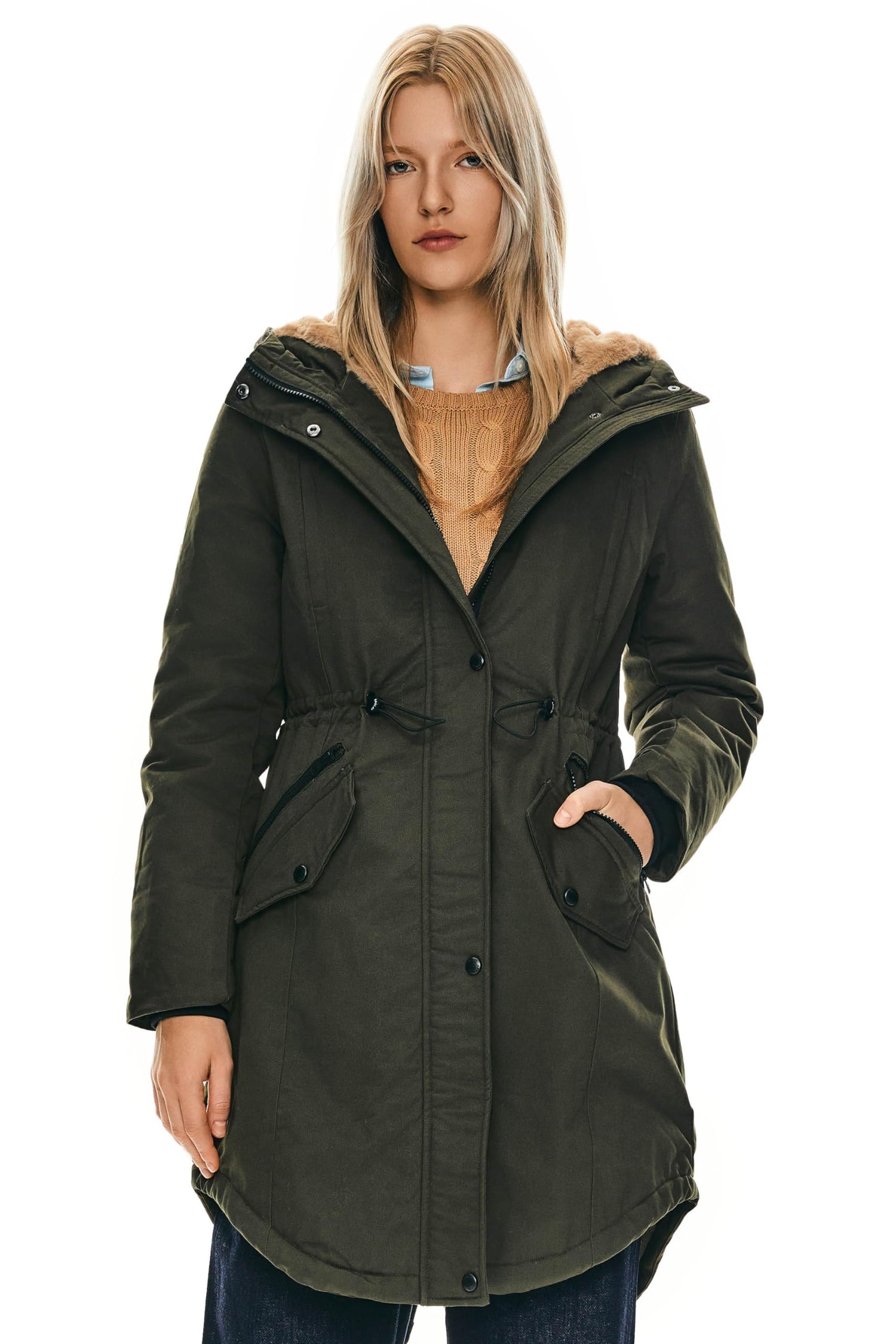 - Ajustable: el cuello alto con capucha grande te protege bien del frío. El cordón del borde terminado podría cambiar fácilmente la forma de la chaqueta, mostrar el cuerpo perfecto de la mujer, resaltar su elegancia.