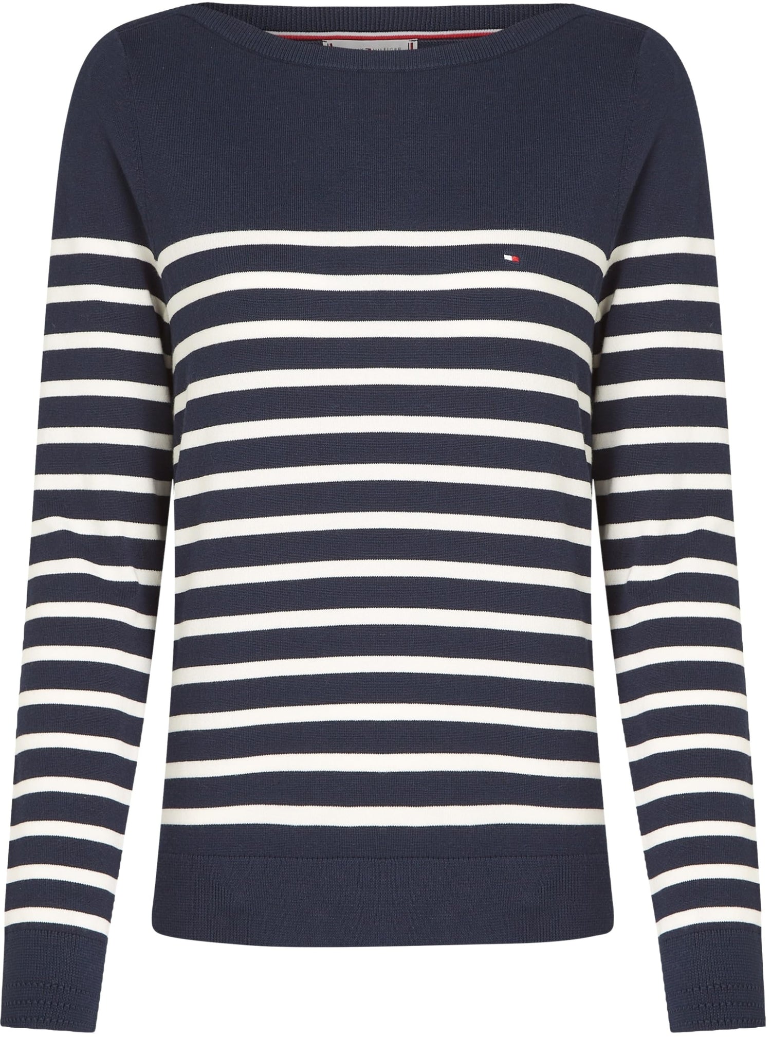 - ICÓNICO Y ATEMPORAL: El jersey original de Tommy Hilfiger tiene un diseño sencillo y destaca por su aspecto elegante y clásico. El bonito escote tipo barco hace de esta prenda todo un clásico.