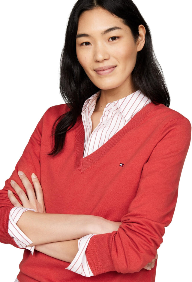Tommy Hilfiger Mujer Jersey V-Neck Jersey de Punto, Rojo (Terra Red), 3XL is backordered and will ship as soon as it is back in stock.