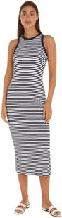 Tommy Hilfiger Vestido para Mujer Maxi Dress sin Mangas, Multicolor (Mini Stp Desert Sky/ White), S