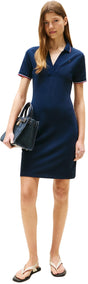 Tommy Hilfiger Vestido Tipo Polo Mujer 1985 Slim Fit, Azul (Dark Night Navy), M