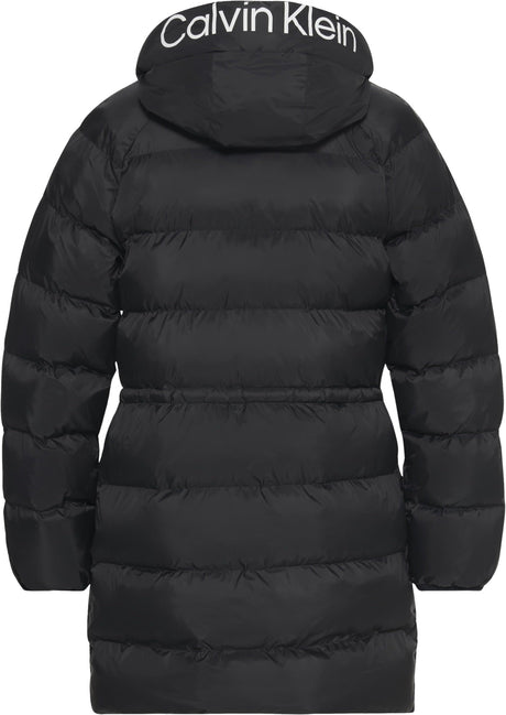 Calvin Klein Abrigo de plumas Mujer Lightweight Logo Mid Length con capucha, Negro (Black), S