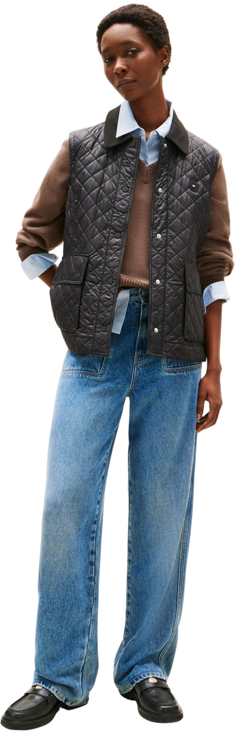 Tommy Hilfiger Chaleco Mujer Padded Nylon Slim Quilted Acolchado, Negro (Black), XL