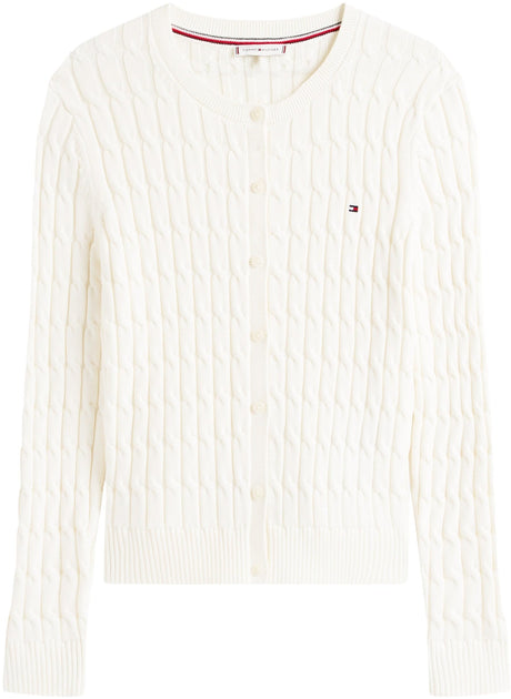 Tommy Hilfiger Chaqueta de punto Mujer Cardigan Co Cable Mid Slim Fit, Blanco (Ivory Silk), XL