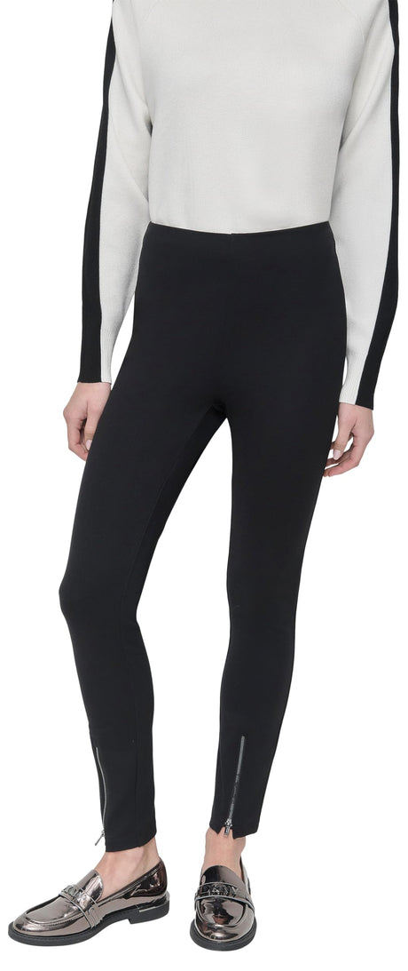 DKNY Pull On Ponte Pant W/Zipper Detail Pantalones, Negro, L Mujeres