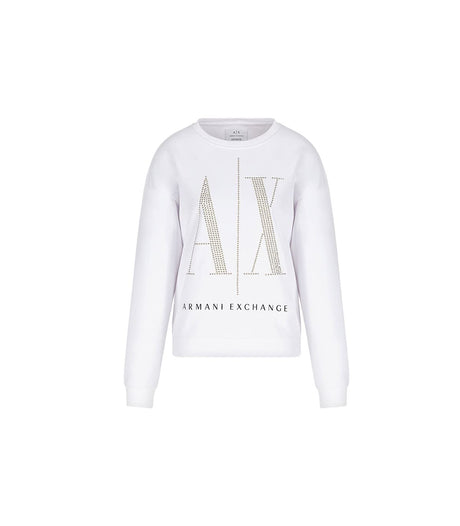 Armani Exchange Studded Icon Sweatshirt Sudadera, Blanco, S para Mujer