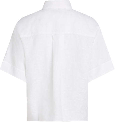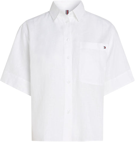 Tommy Hilfiger Camisa Mujer Linen Relaxed de manga corta, Blanco (Th Optic White), 44