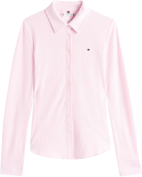 Tommy Hilfiger Camisa Mujer 1985 Slim con cuello francés, Multicolor (Ithaca Stp/ Classic Pink), S