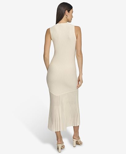 DKNY Vestido Maxi de Punto Acanalado sin Mangas Informal Nocturno, Eggnog, M para Mujer