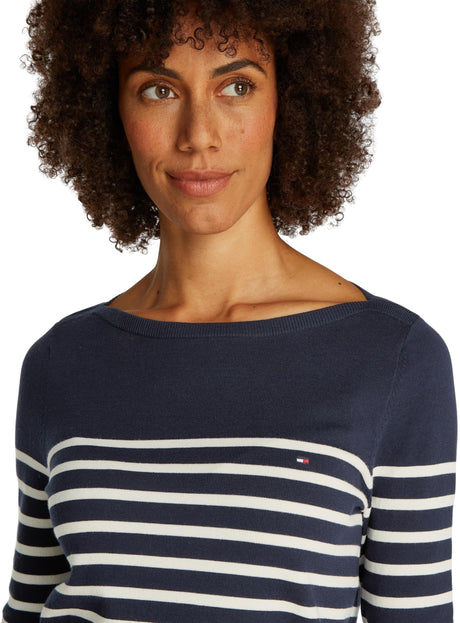 Tommy Hilfiger Jersey de Punto para Mujer, Multicolor (Dark Night Navy/Ivory Petal STP), L