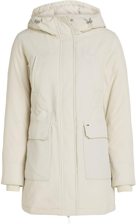 Tommy Jeans Parka Mujer con Capucha, Marfil (Newsprint), L