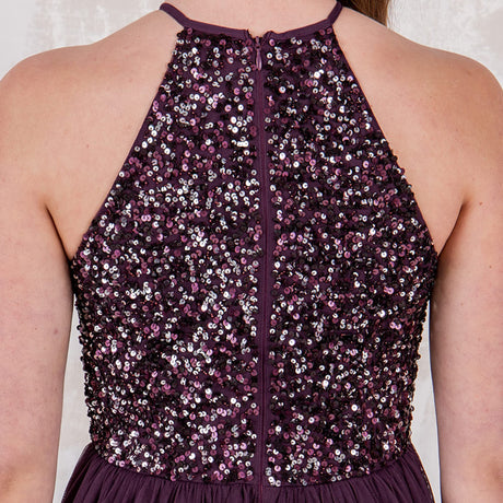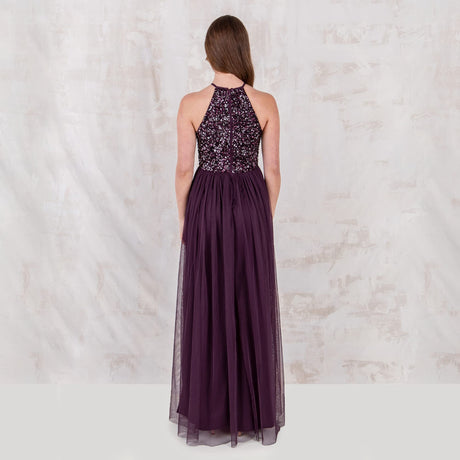 Maya Deluxe Maya Berry Embellished Halter Neck Maxi Dress Vestido de Dama de Honor, 12 para Mujer
