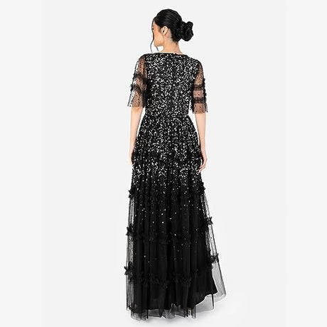Adrianna Papell Chiffon Overlay Short Dress Vestido de cóctel, Azul Marino, XL para Mujer
